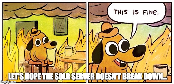 Lastly, in order to make the setup more reliable, a load balancer is placed in front of the CD servers. Then if either the CD server or Solr server running on the CD server fails, the entire server "node" must be taken out of the load balancer rotation, until it is fixed and running again.